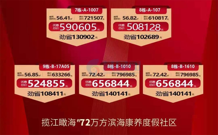 海南房产网新资讯:6.1特惠房盎然来袭,精选5套房源,限时售。建面约56.41-72.42㎡,特惠50.8-65.6万/套。