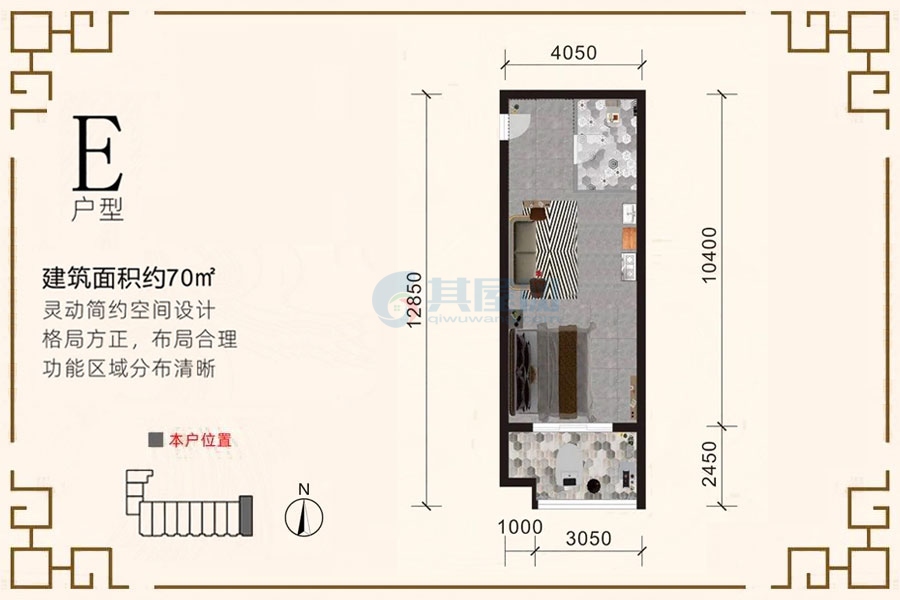 E户型-建面约70.00㎡-1房1厅1卫(建筑面积:70.00㎡)